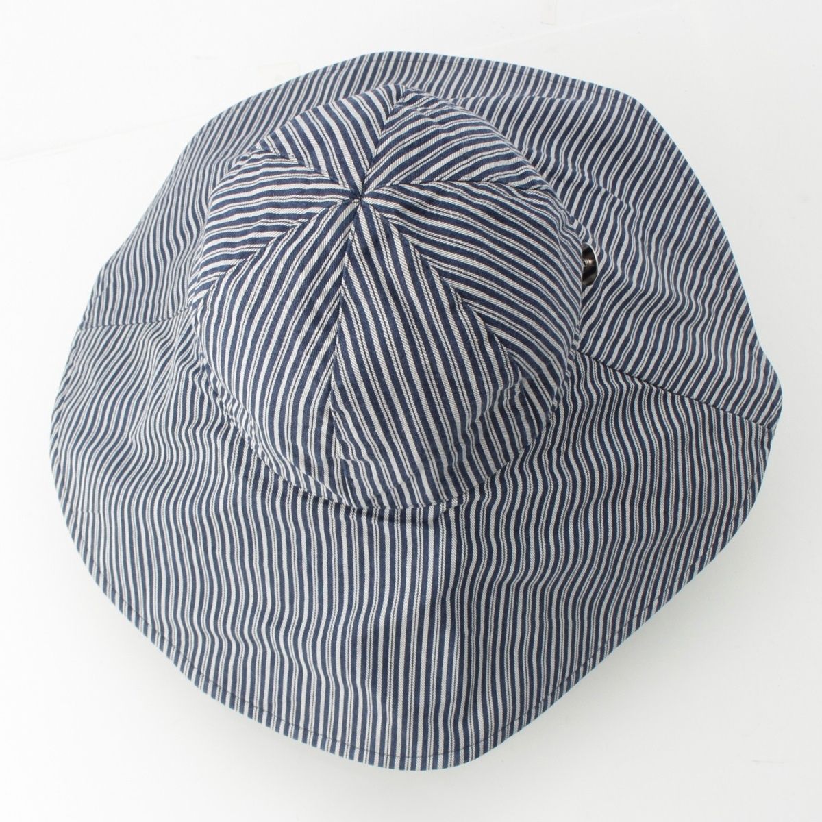 シャネル コットン 飛行機 ストライプ バケット ハット つば広帽子 ネイビー×ホワイト 57