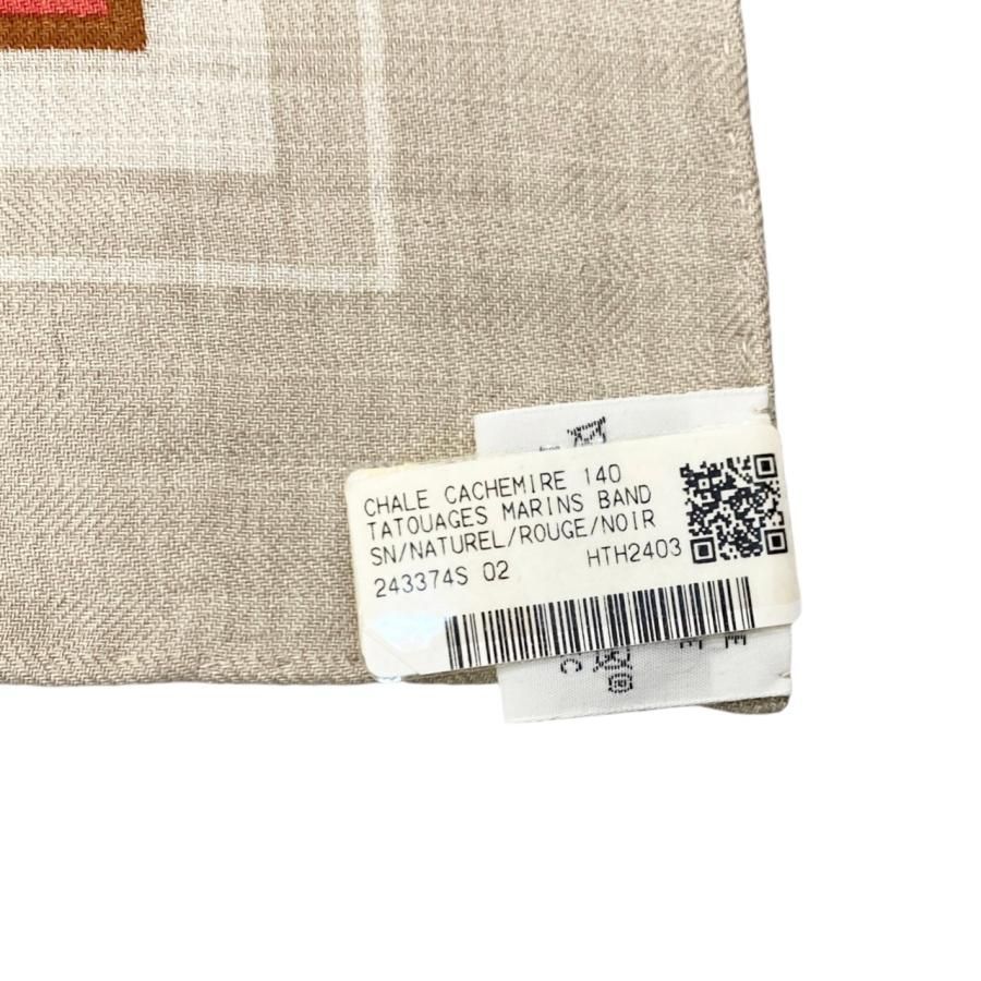 E 3130 エルメス バンダナ カレジェアン140 船乗りのタトゥー 02 ナチュレル ルージュ ノワール Tatouages Marins HERMES