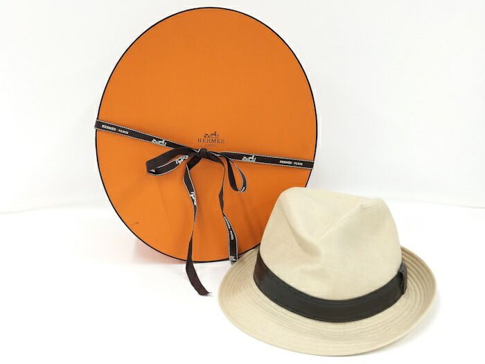 HERMES ハット 帽子 リネン ベージュ 表記サイズ57
