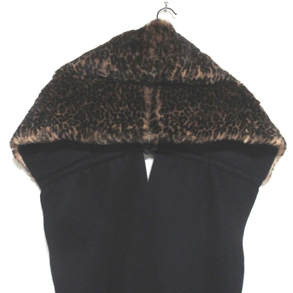 FENDI フェンディ カシミヤ×ミンク レオパード柄 オリラグファー キャンディストール マフラー ブラック×ブラウン レディース 古着