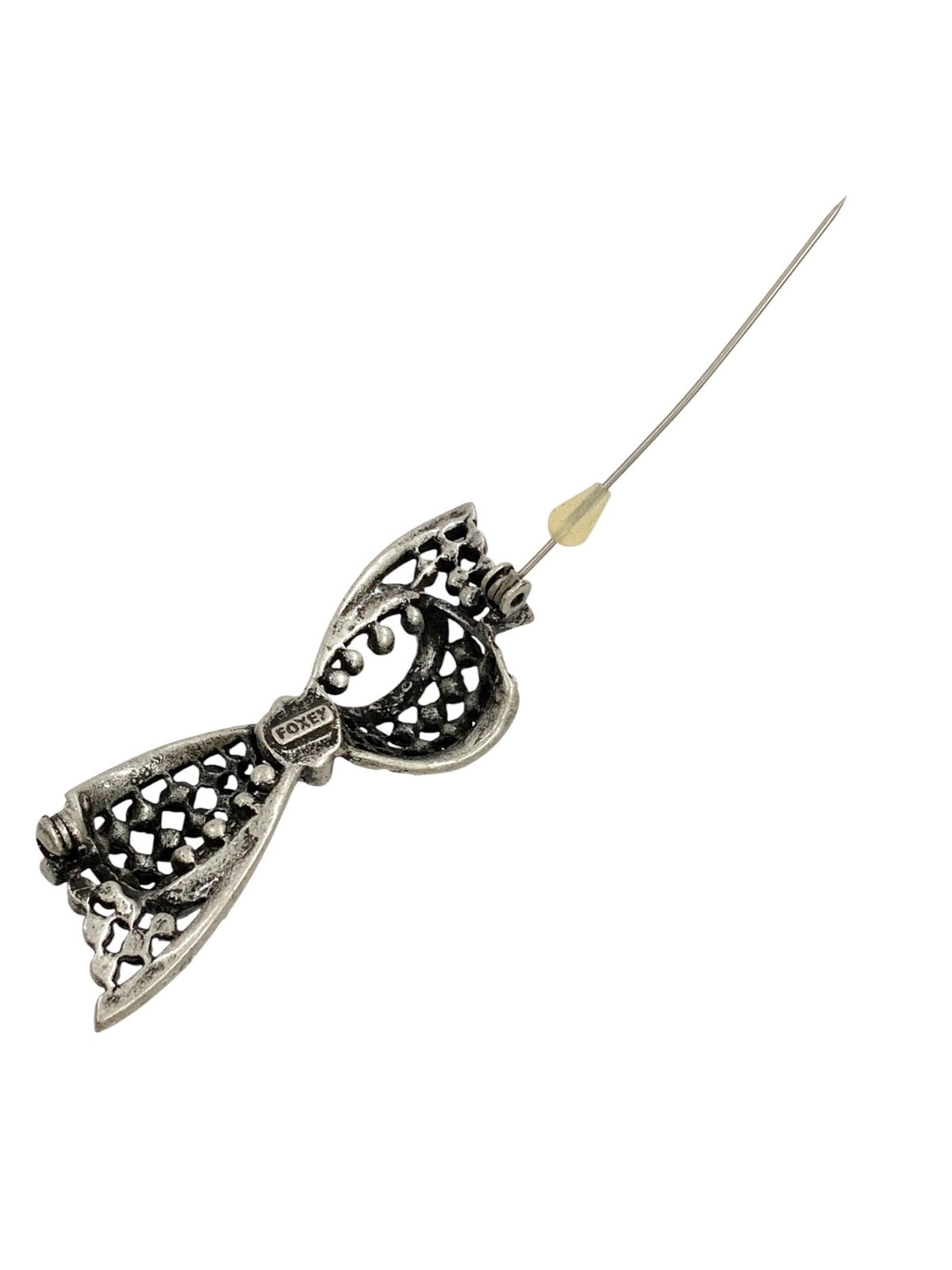 フォクシーブティック ブローチ シルバー ラインストーン リボン