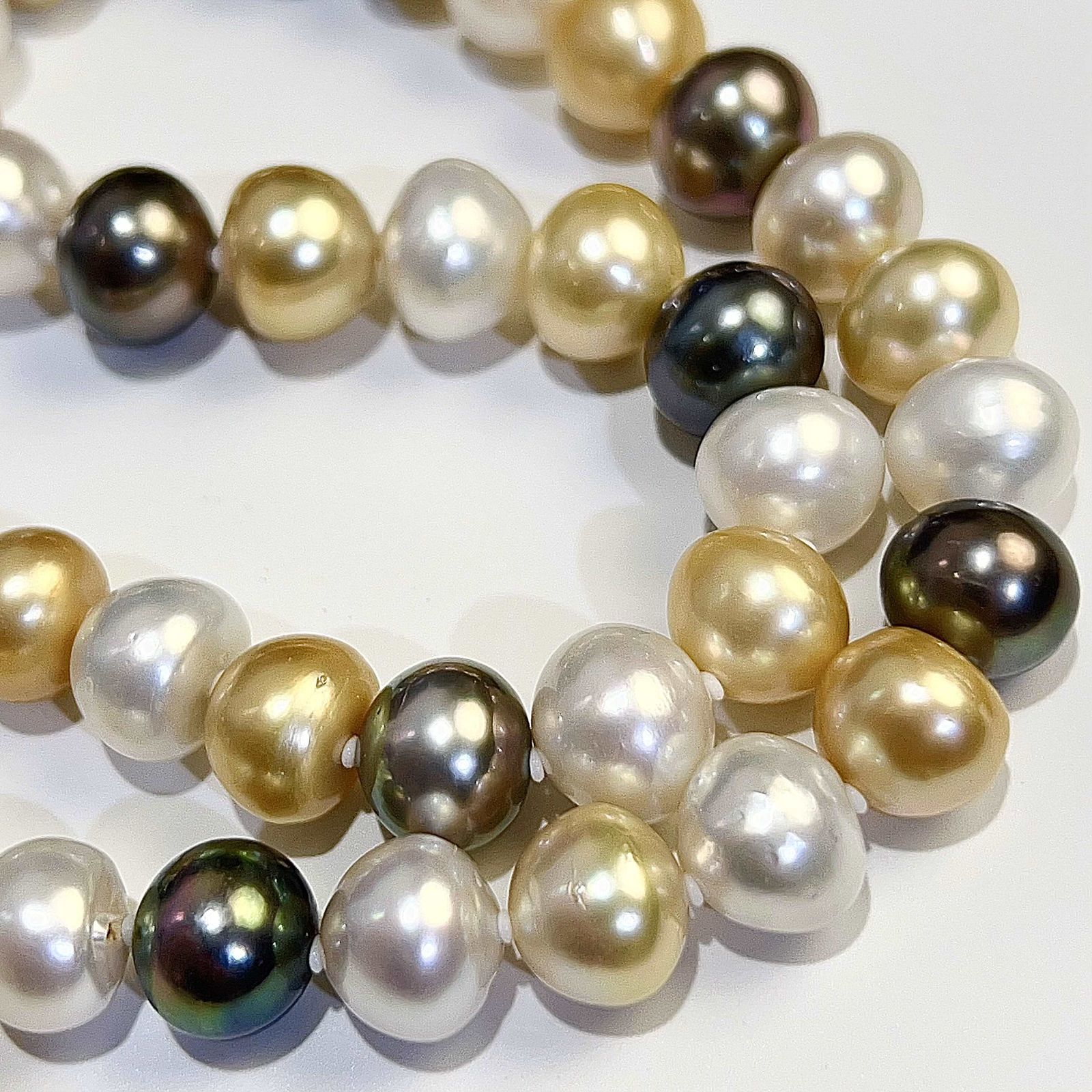 SV 天然 白蝶 南洋 黒蝶 タヒチ ゴールド ブラック シルバーグレイ パール ネックレス 42.5 cm P 10-11.9 mm 71.5 g 鑑別書 本真珠 レディース aua 119364 r 60615