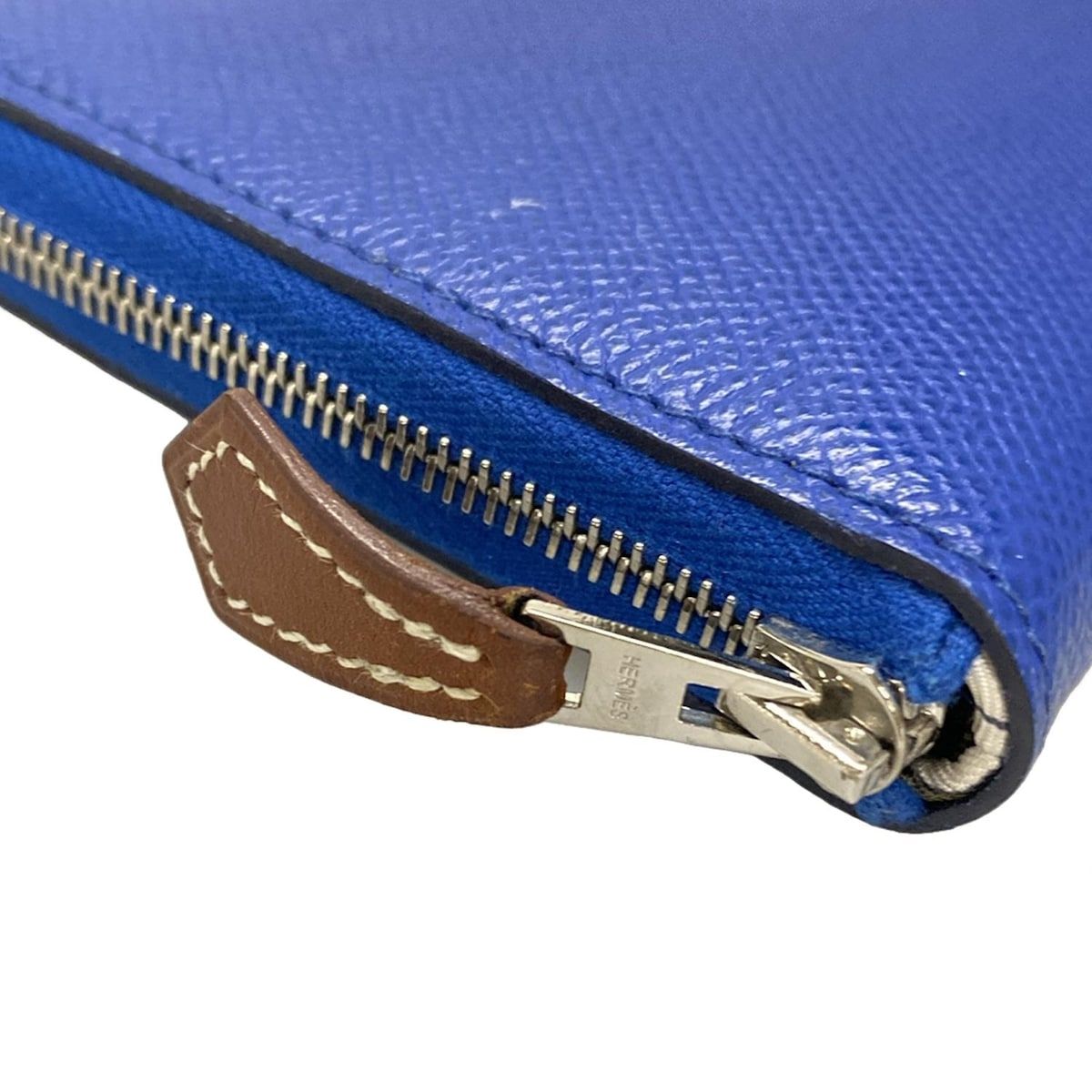 HERMES エルメス 長財布 アザップロングシルクイン ブルーフランス×ビスキュイ ラウンドファスナー シルバー金具