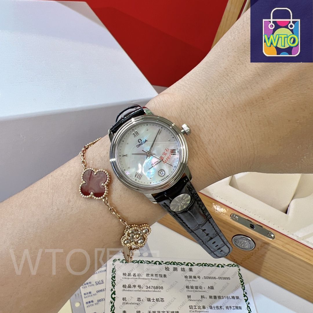オメガの見事なデビル エ legance シリーズのレディースモデルは、精緻で華やかな雰囲気を完璧に体現しています。316 ファインスチールを使用しており、極上の質感を誇ります。ダイヤルには深海のカラフルな真珠貝を採用し、計り知れない美しさを放っています。石英ムーブメントを搭載し、品質が保証されています。指針にはエッチング加工を施し、両面に透き通るサファイアクリスタルガラスを使用し、316 スチールのバンドと組み合わされています。サイズは 32.7mm×8mm です。
