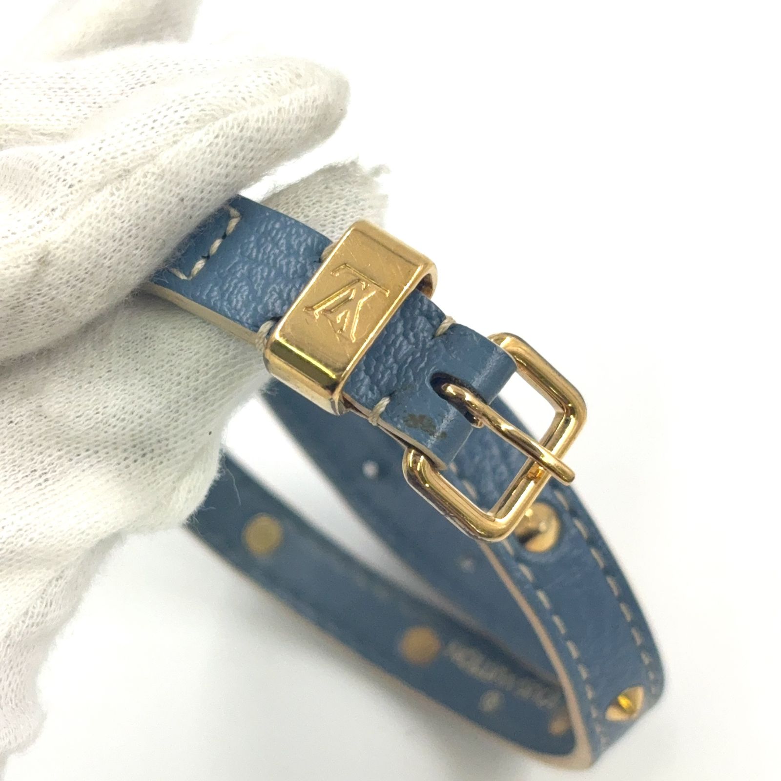 【商品名】LOUIS VUITTON ブラスレ ドゥブルトゥール スハリ レザー ブルー バングル ゴールド M91845