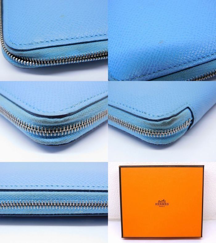 エルメス HERMES アザップコンパクト シルクイン コンパクト財布 ウォレット D刻印 ライトブルー系 レディース 7 J