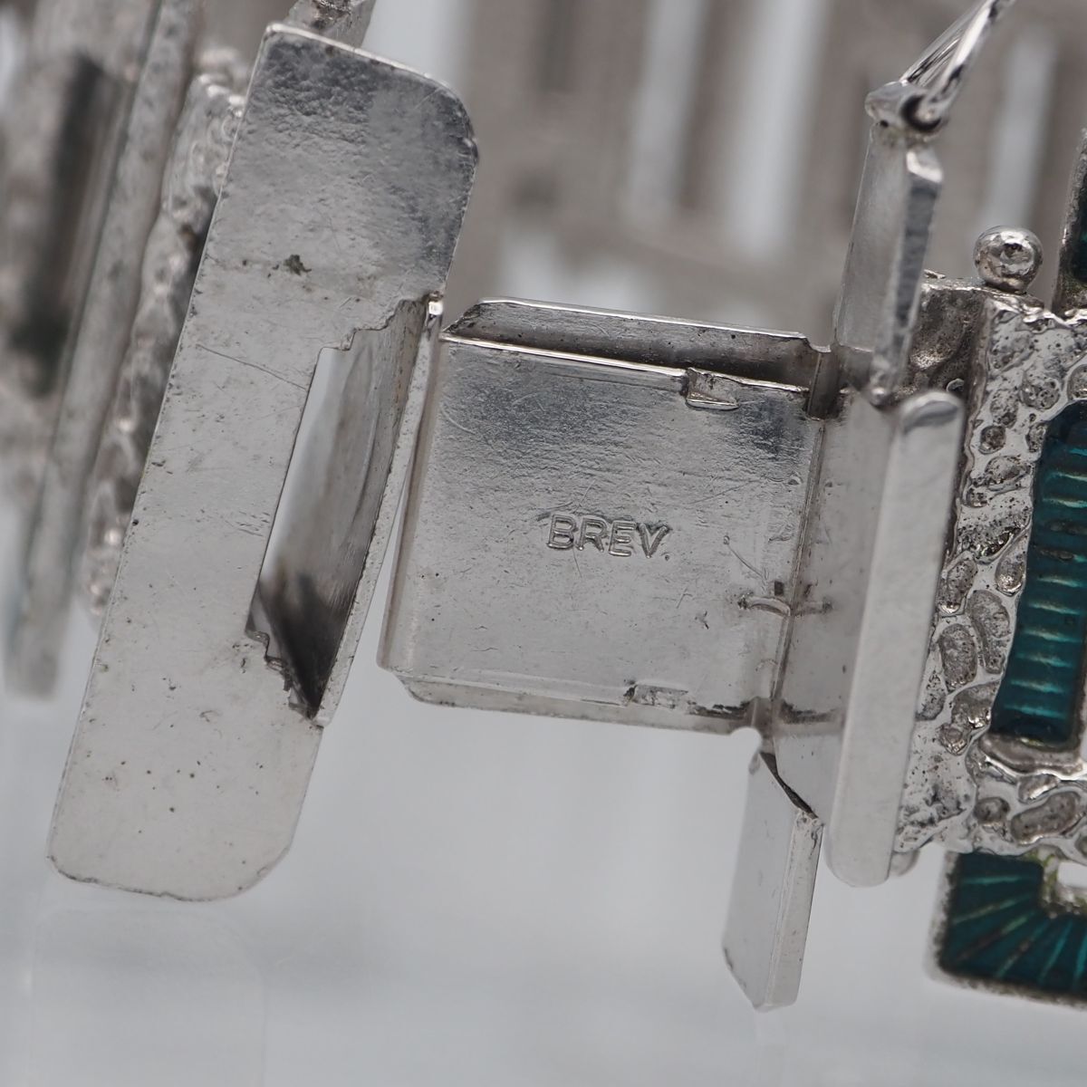 G 702 BREV. 800刻印 ブレスレット グリーンエナメル デザイン シルバー