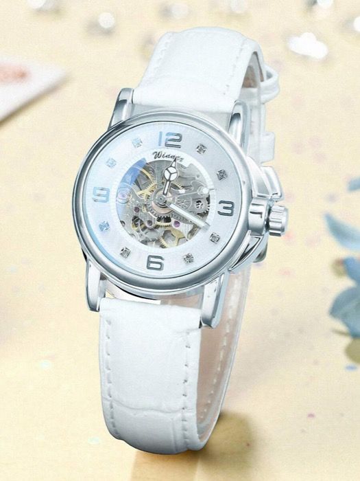 腕時計 レディース 機械式 - ファッション エレガントな自動巻き機械式腕時計 アイスダイヤル ルミナスハンド ホワイトレザーベルト ビジネスカジュアル ブランド 贈り物 ボックス付き