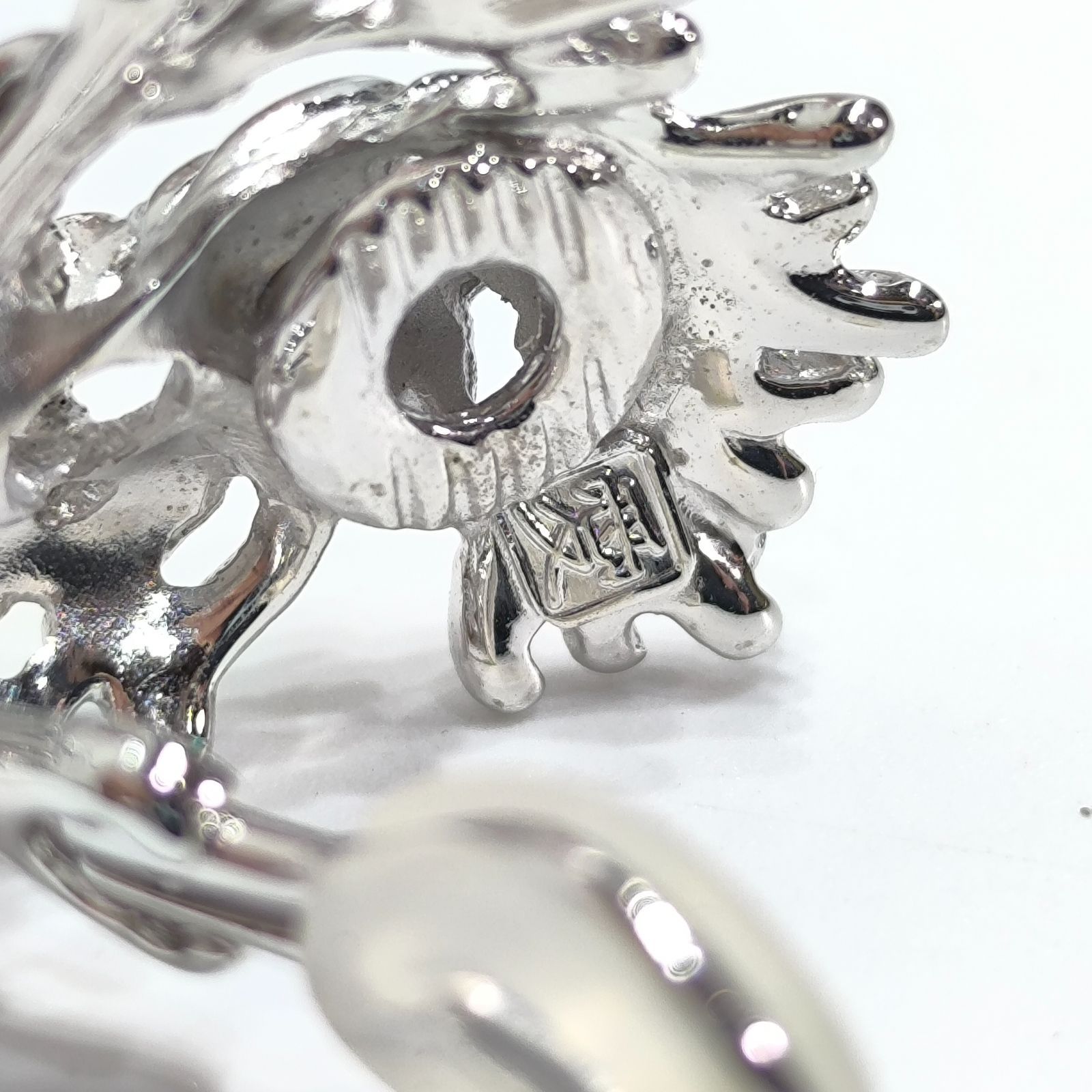 日本人作家 ”愛”作の、中央に一粒ダイヤモンドがあしらわれ、18金ホワイトゴールドをふんだんに使用したイヤリング