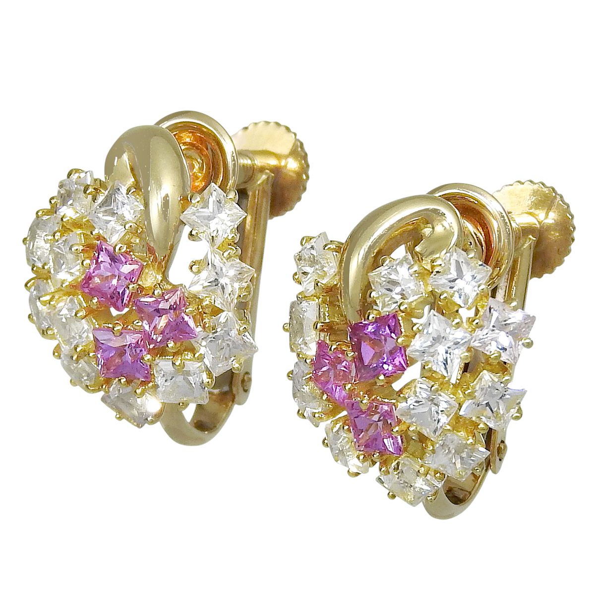 JUNE ジュネ PS 3.58 ピンクサファイア ダイヤモンド イヤリング K 18 イエローゴールド YG ジュエリー ゴールド金 ピンク レディース アラモード