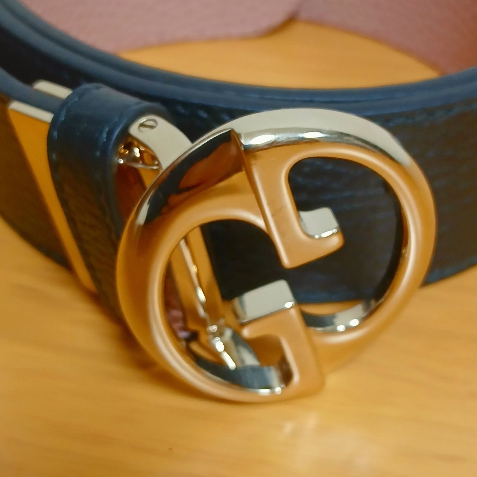 グッチ GGロゴバックル リバーシブル レザーベルト ブラック×ピンク金
