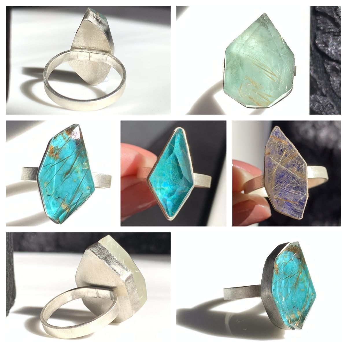 ターコイズ×ルチルクォーツ ダブレット ストーン リング SV 925シルバー 1点もの 235-4