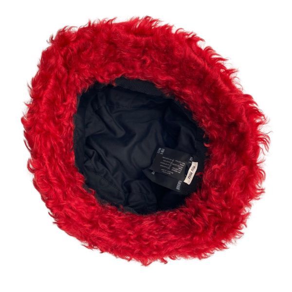 ミュウミュウ MIU ファーバケットハット 帽子 ブランドロゴ 赤 レッド モヘア混 コットン混 M レディース 5 E 185