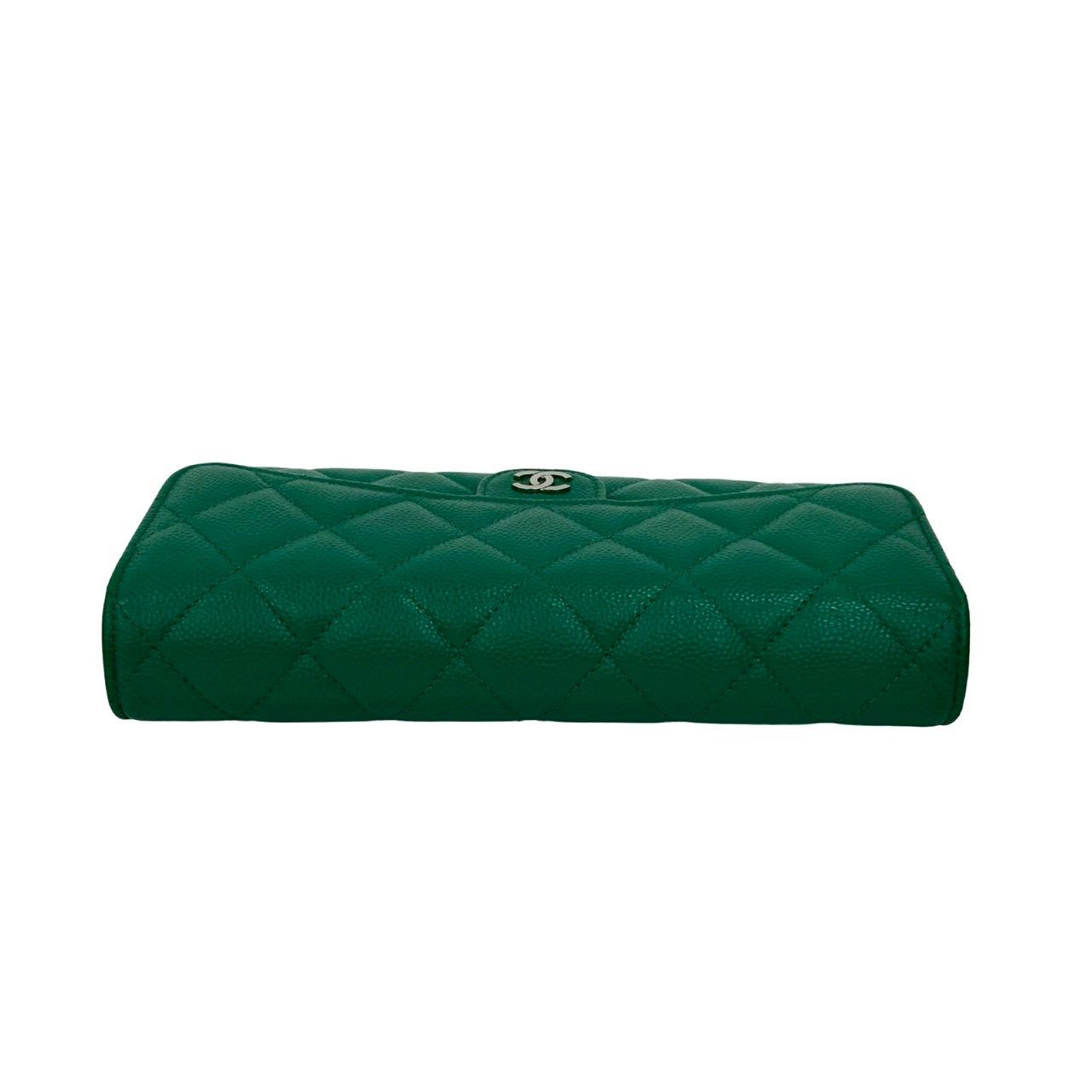 箱 袋付き カード シール有 30番台 CHANEL シャネル マトラッセ ココ キャビアスキン レザー 長財布 ウォレット グリーン 74528