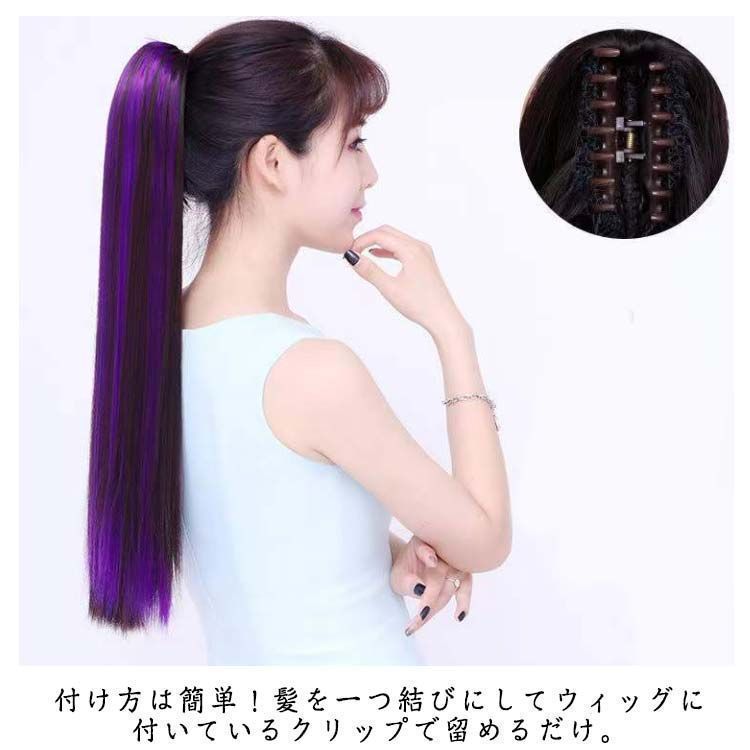 クリップ式 グラデーション 髪の長さ約60 cm 原宿 ストレート グラデタイプ ロングポニーテール ウィッグ 簡単装着 ポニーテール コスプレ ボリューム dzdx 8597