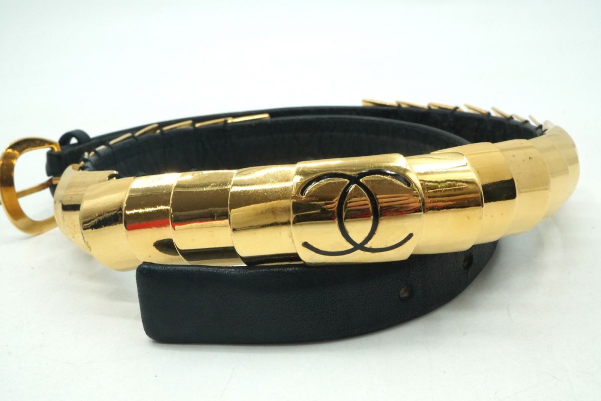 シャネル ヴィンテージ 70 28 約S ナローベルト ウエストマーク ココマーク ゴールドプレート デザイン レザー CHANEL 4257 k
