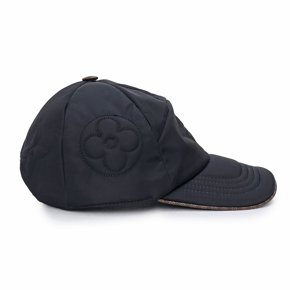 ルイ ヴィトン LV ピロー キャップ ハット 帽子 ナイロン シルク 牛革 ノワール ブラック ゴールド金具 M 7797 LOUIS VUITTON