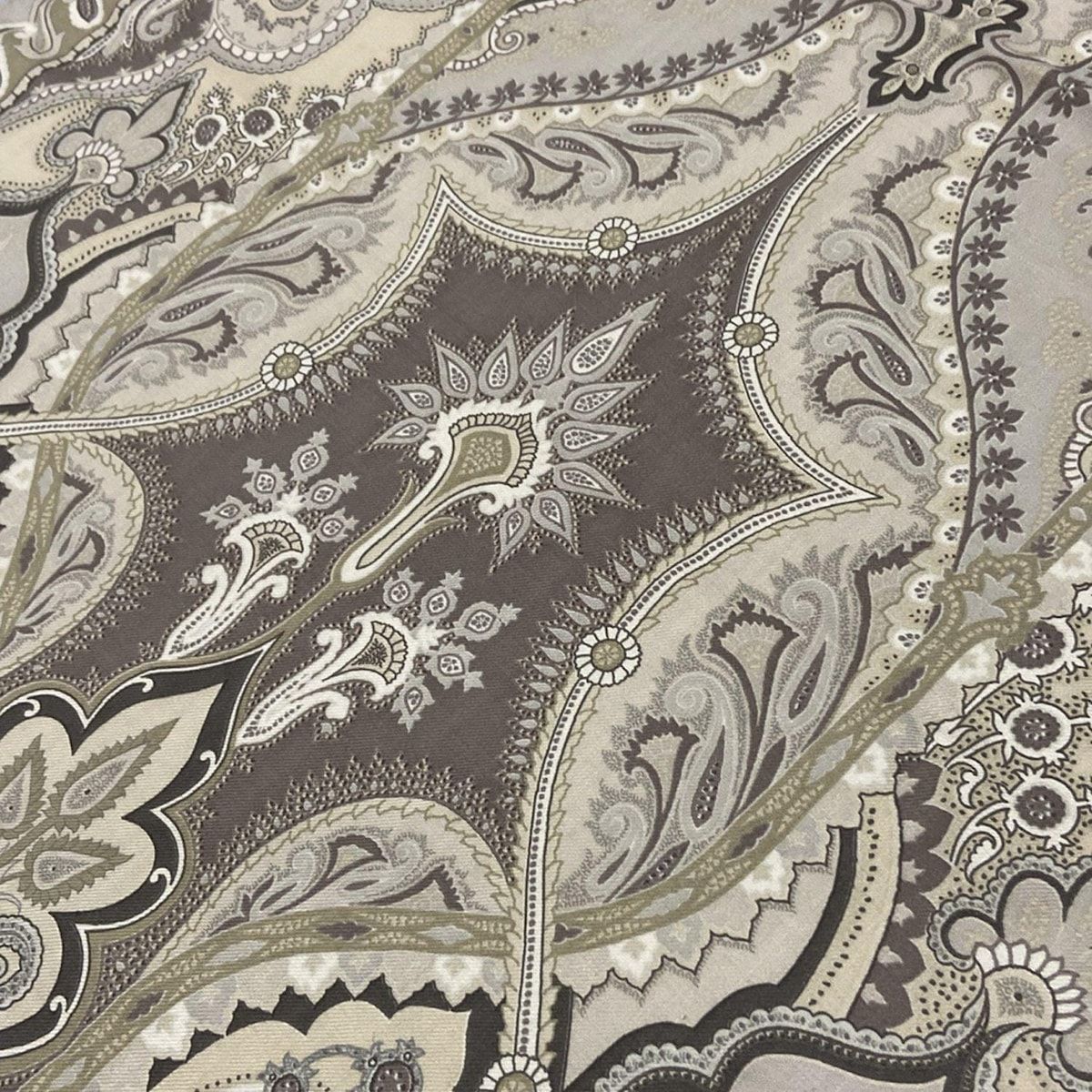 ETRO エトロ ストール ショール - グレーベージュ×カーキ×マルチ ペイズリー柄 ウール シルク