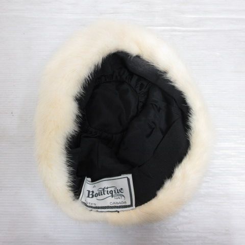 Boutique HAT KATES CANADA ミンク ハット 帽子 キャップ 毛皮 60 cm オフホワイト 裏地付き カナダ製
