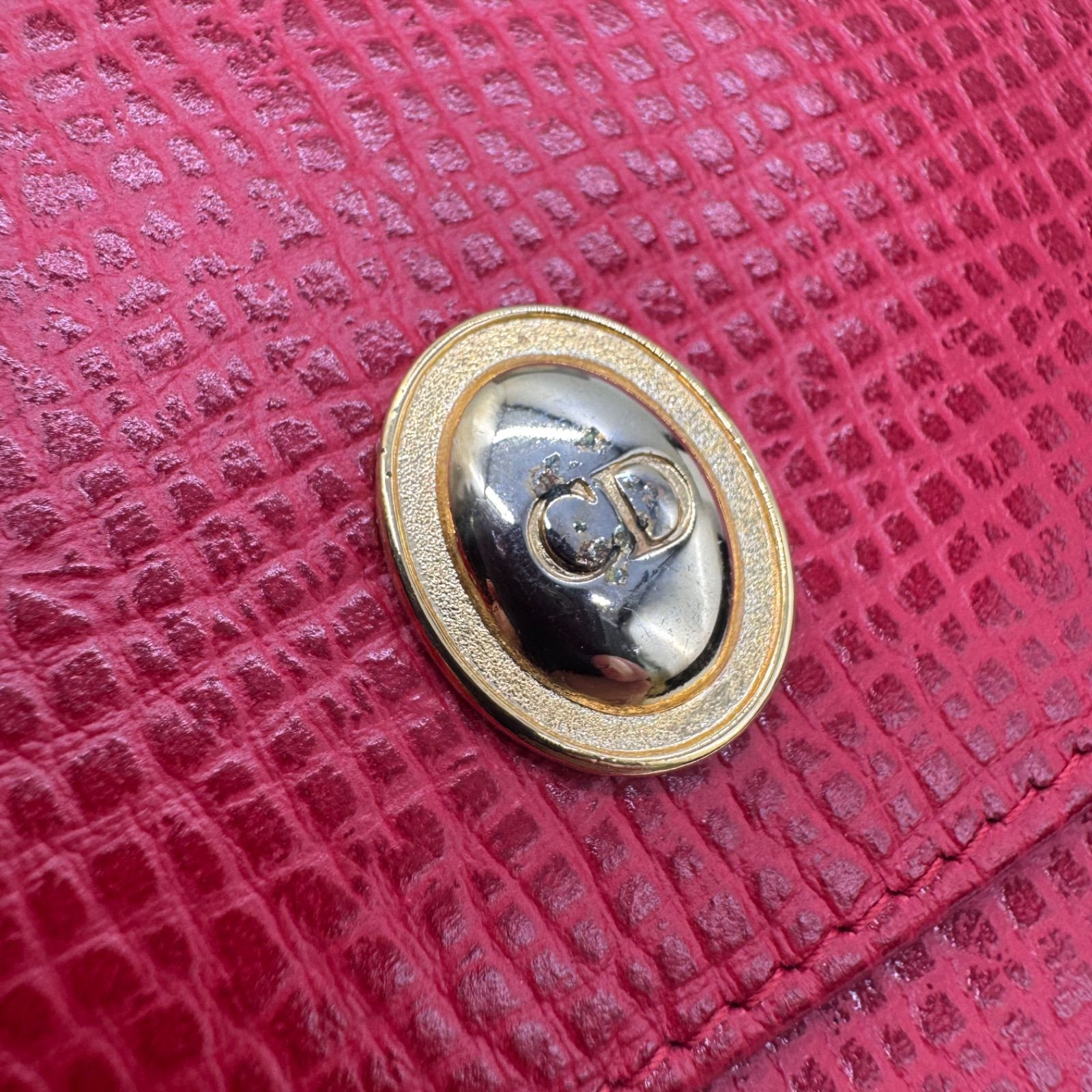 Christian Dior クリスチャンディオール レザーウォレット 長財布 ゴールドロゴ金具 赤 レッド