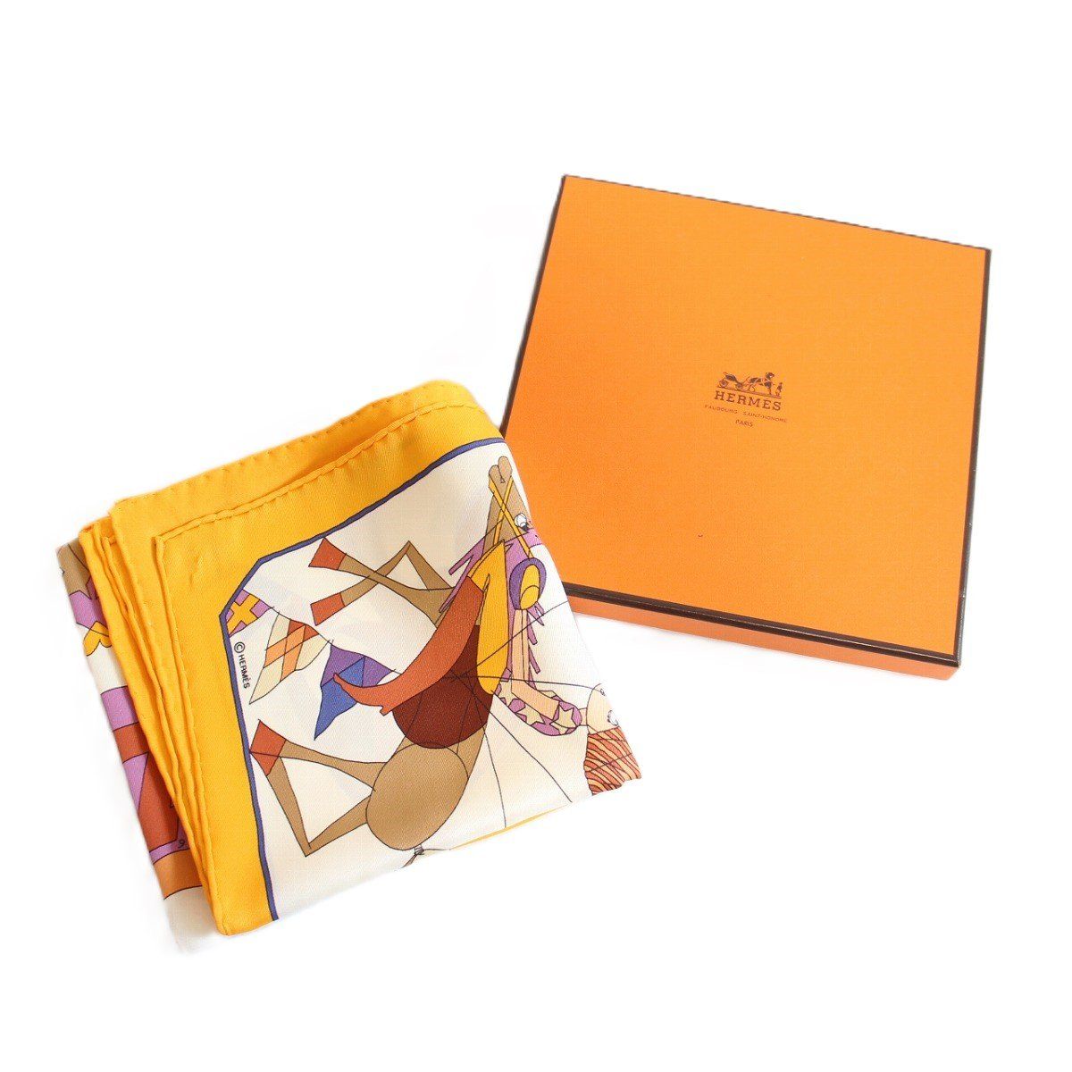 HERMES エルメス カレ 70 スカーフ 馬への愛 シルク100% イエロー系