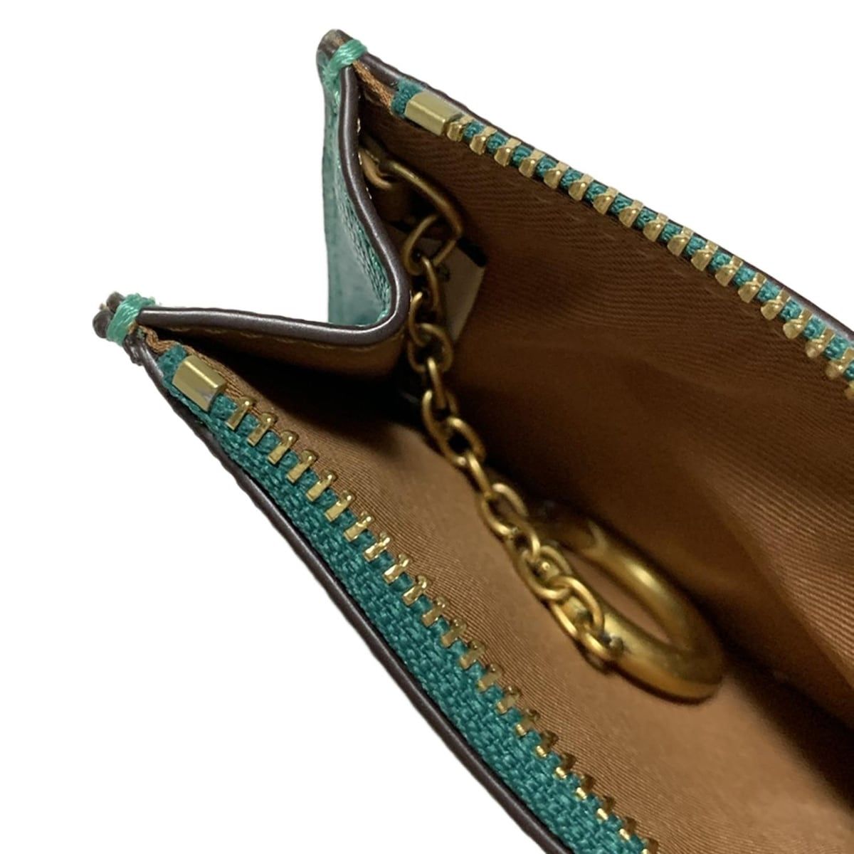COACH コーチ コインケース ミニスキニー CH 810 ブルーグリーン パスケース付き キーリング付き レザー