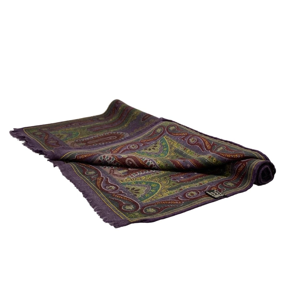 ETRO エトロ ストール ショール - パープル×ダークグリーン×マルチ ペイズリー柄 ウール シルク