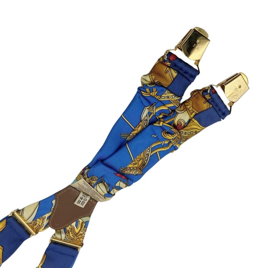 ⭐️美品⭐️ エルメス HERMES シルク サスペンダー ブルー × ゴールド ヴィンテージ の出品です(^^)