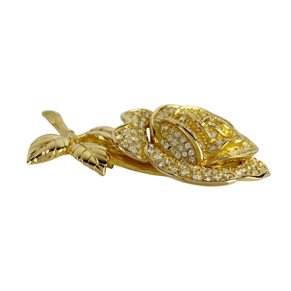 新同 ディオール ローズ ブローチ ピン バッチ 薔薇 ラインストーン GP ゴールド 箱 465277 8