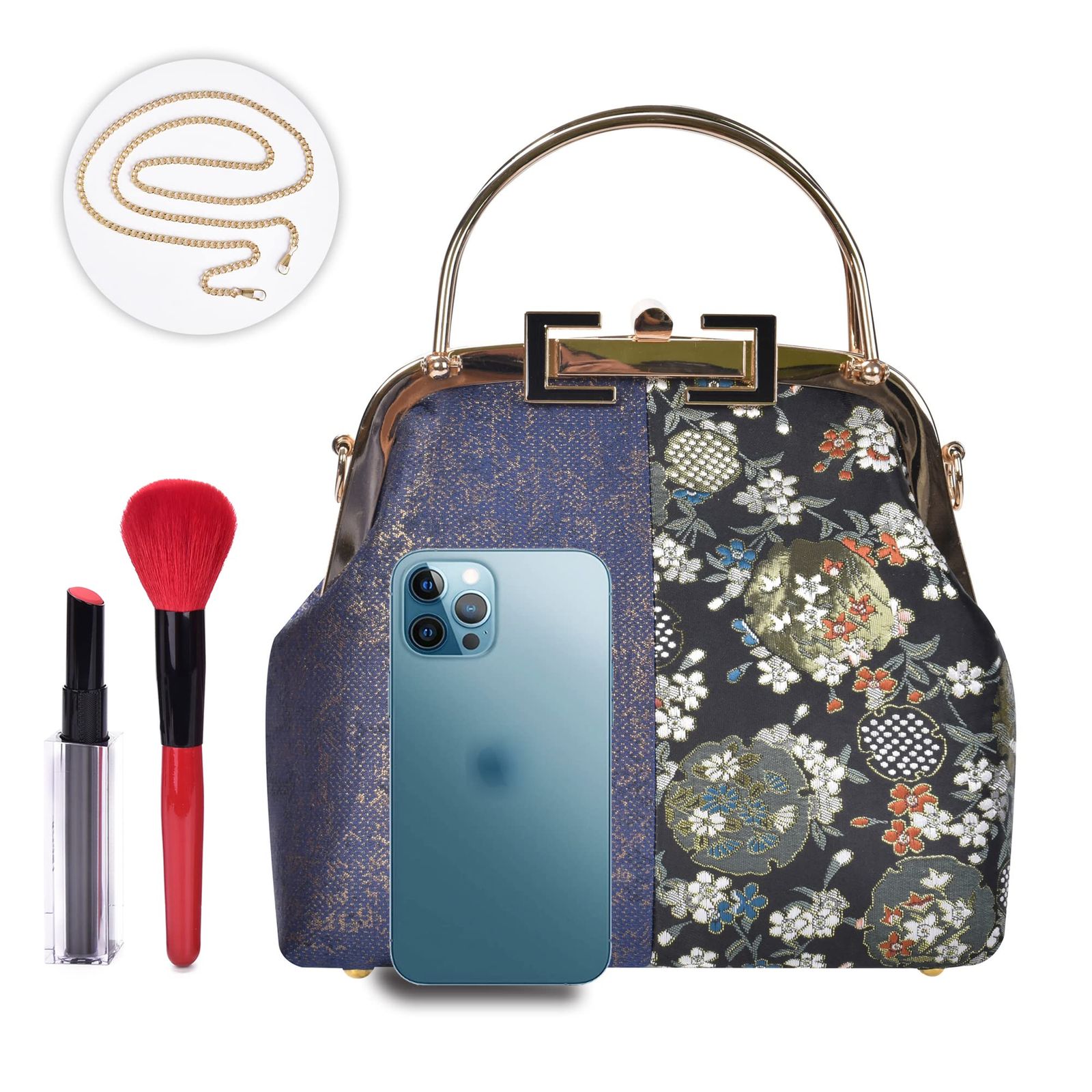 [旗聚堂] がま口 ショルダー ハンド トート 西陣織 着物 振袖 袴 バッグ レディース がまぐち 斜めがけ 2way 軽量 誕生日 大きめ 金襴 ジャガードコットン マルチカラー