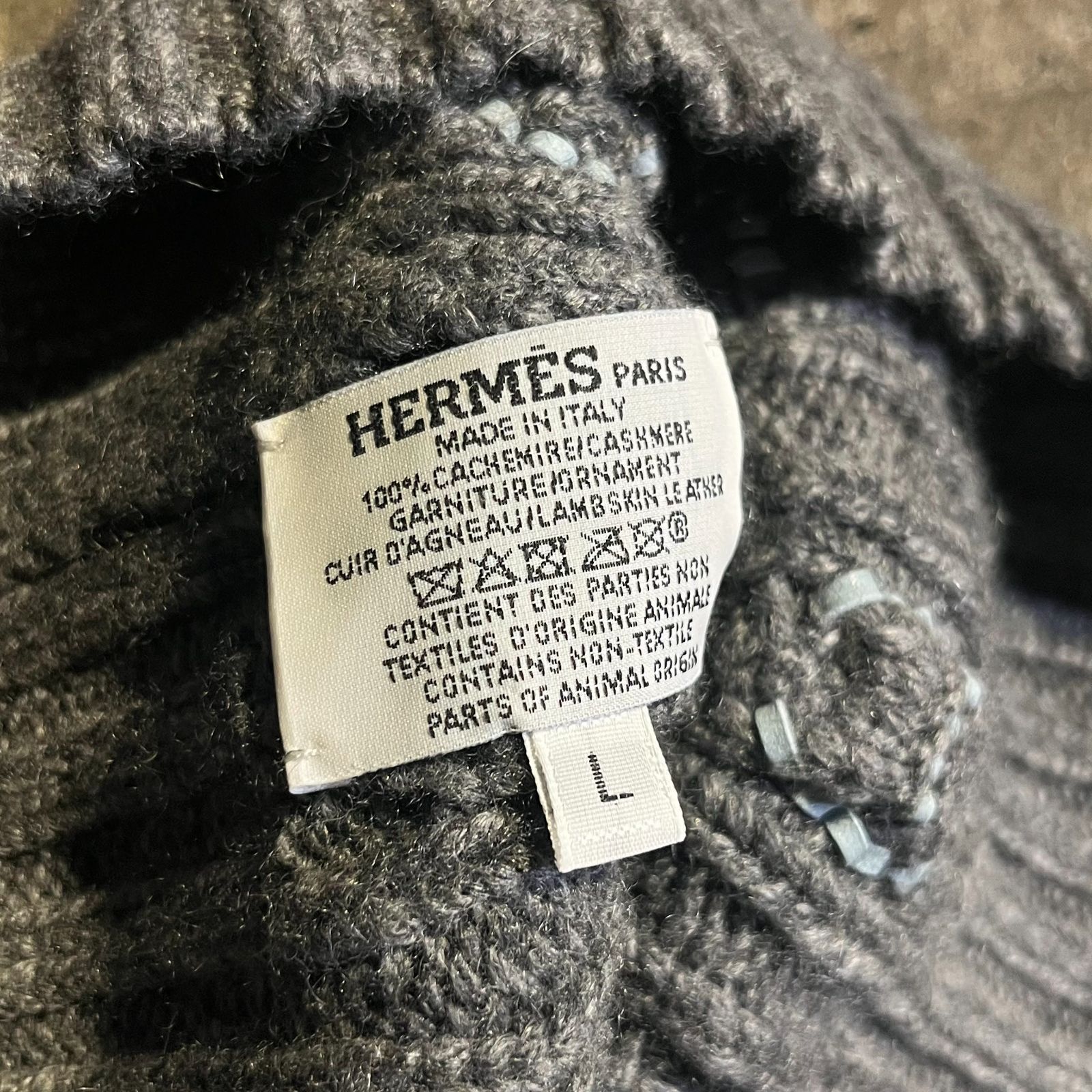 HERMES ニットキャップ トリ マイヨン アニョー トレッセ カシミア シェーヌダンクルモチーフ エルメス 帽子 L