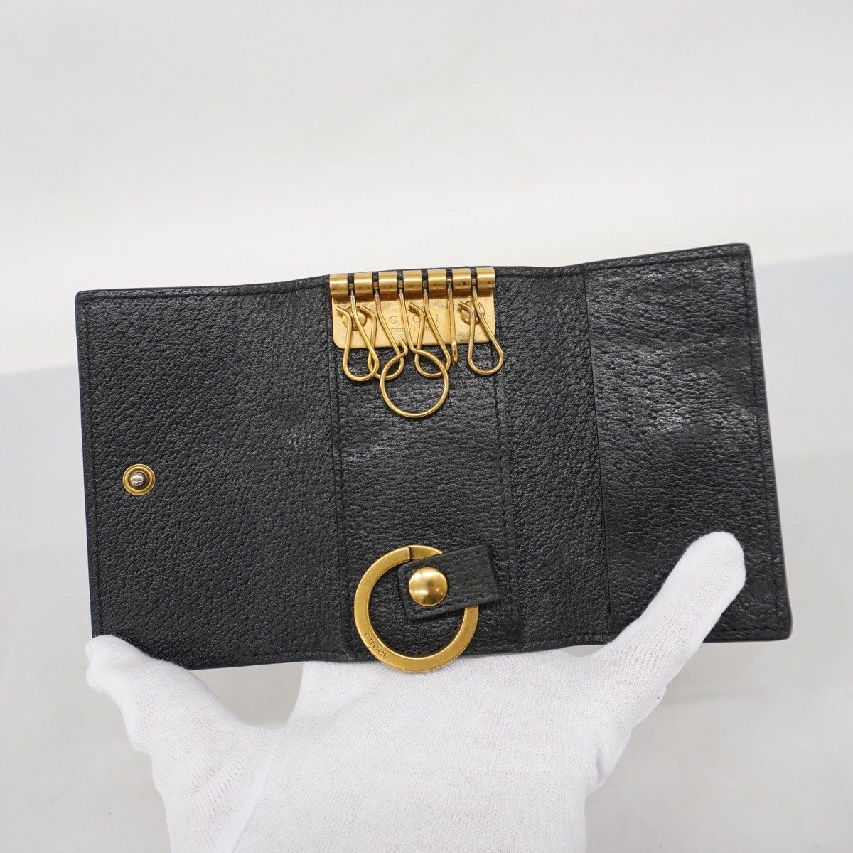 5 ib 2021 グッチ キーケース GGマーモント 435305 レザー ブラック ゴールド金具 レディース