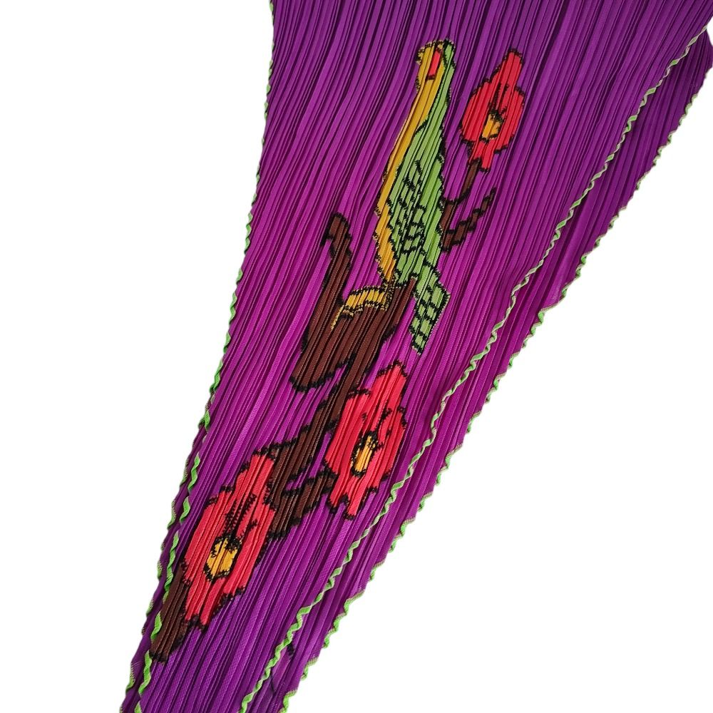 Pleats Please Issey Miyake プリーツプリーズ イッセイミヤケ ウグイス柄 スカーフ ストール マフラー パープル レディース 古着