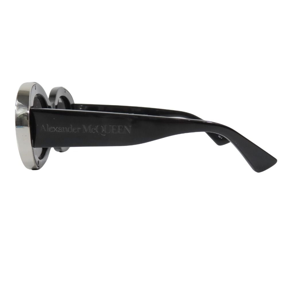 【商品名】Alexander McQueen アレキサンダーマックイーン ラウンドフレーム サングラス ロゴテンプル AM0445S アイウェア 黒 シルバー