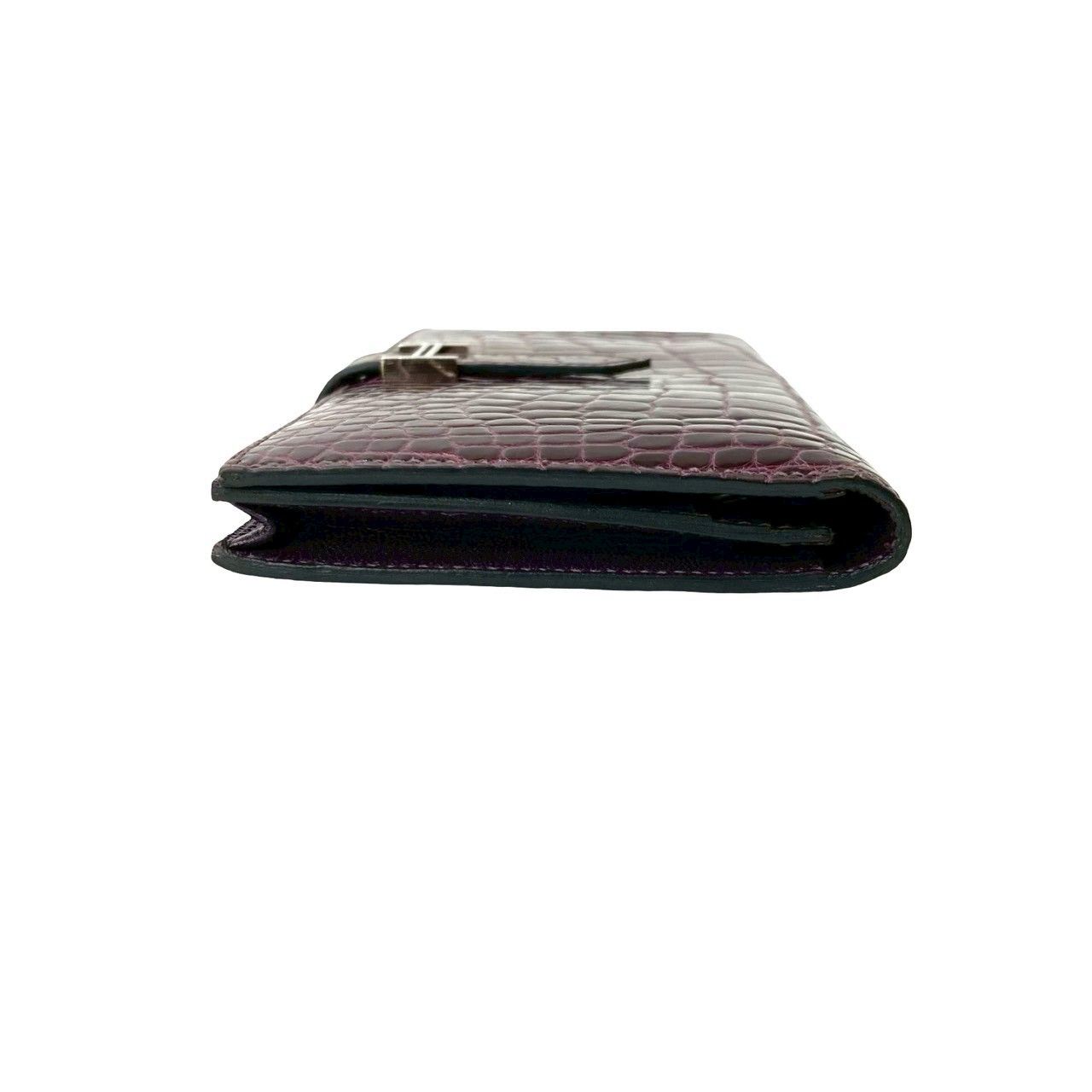 R 刻印 HERMES エルメス ベアン スフレ アリゲーター クロコダイル レザー 本革 長財布 ウォレット 札入れ パープル 30343