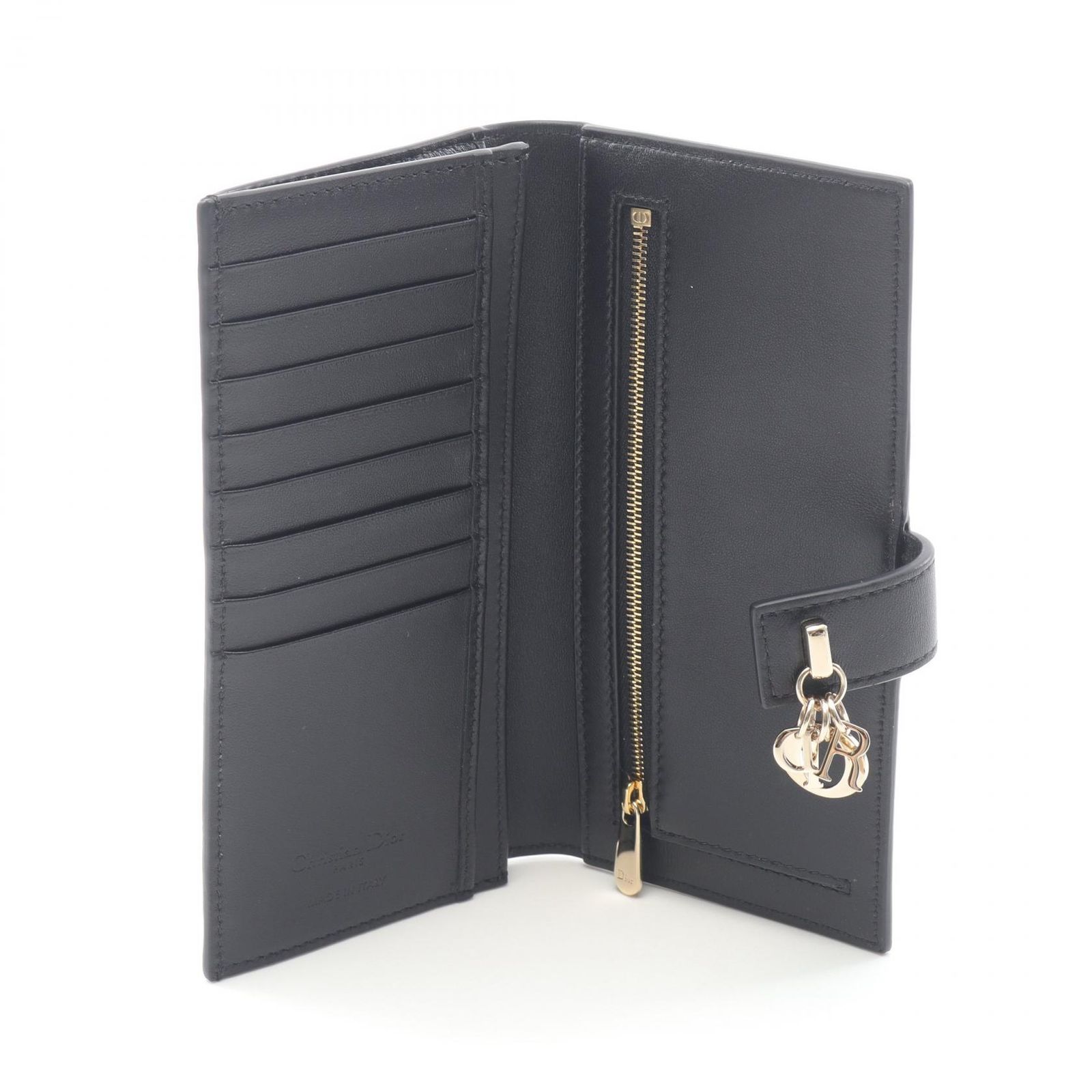 ディオール Dior 二つ折り長財布 My カナージュ ブラック レザー 長財布 レディース