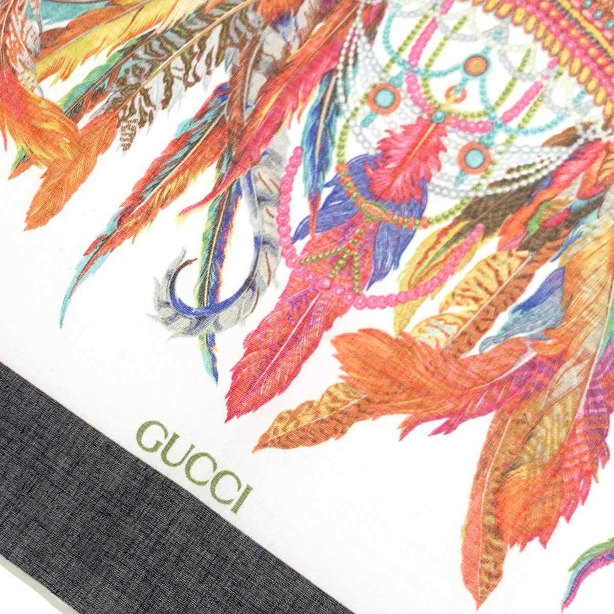 GUCCI グッチ ミニスカーフ ホワイト フェザー 羽 コットン100% レディース
