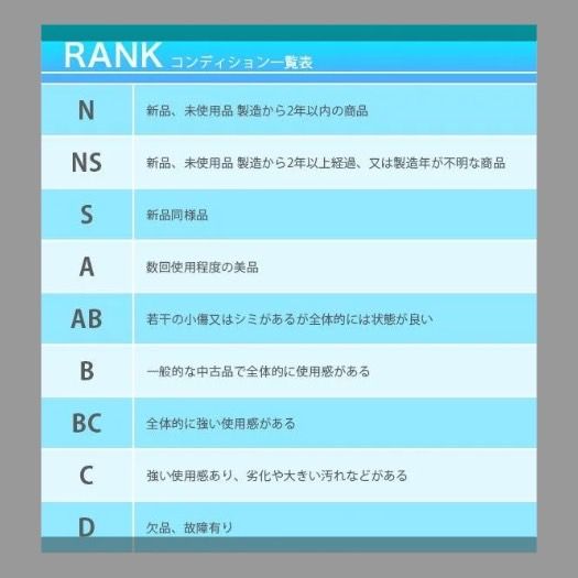 AB:若干の小傷又はシミがあるが全体的には状態が良い