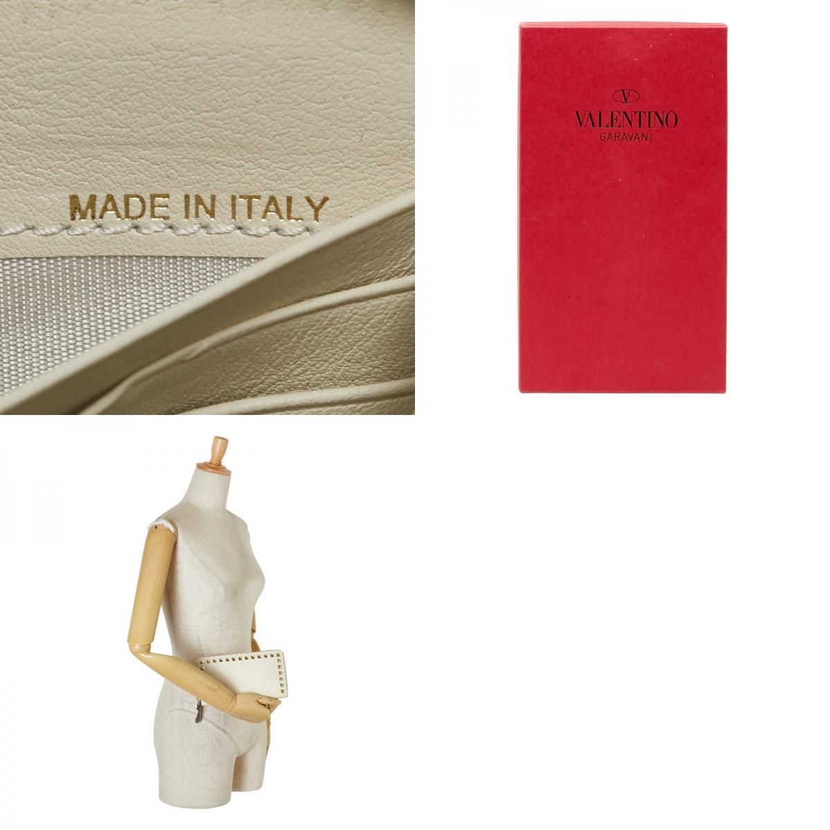 ヴァレンティノ ロックスタッズ ラウンドファスナー 長財布 ホワイト レザー レディース 1-0234039