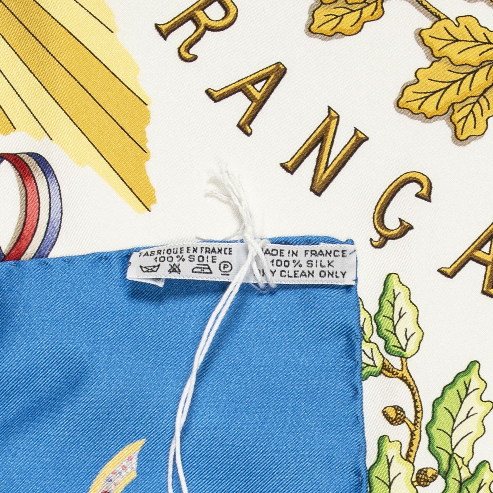 HERMES エルメススカーフ青 金 白 ツイルシルクA