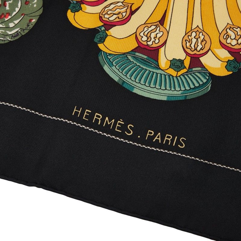 エルメス カレ90 晩餐 食卓 ロブスター ブラック マルチ シルク レディース HERMES 1-0239851