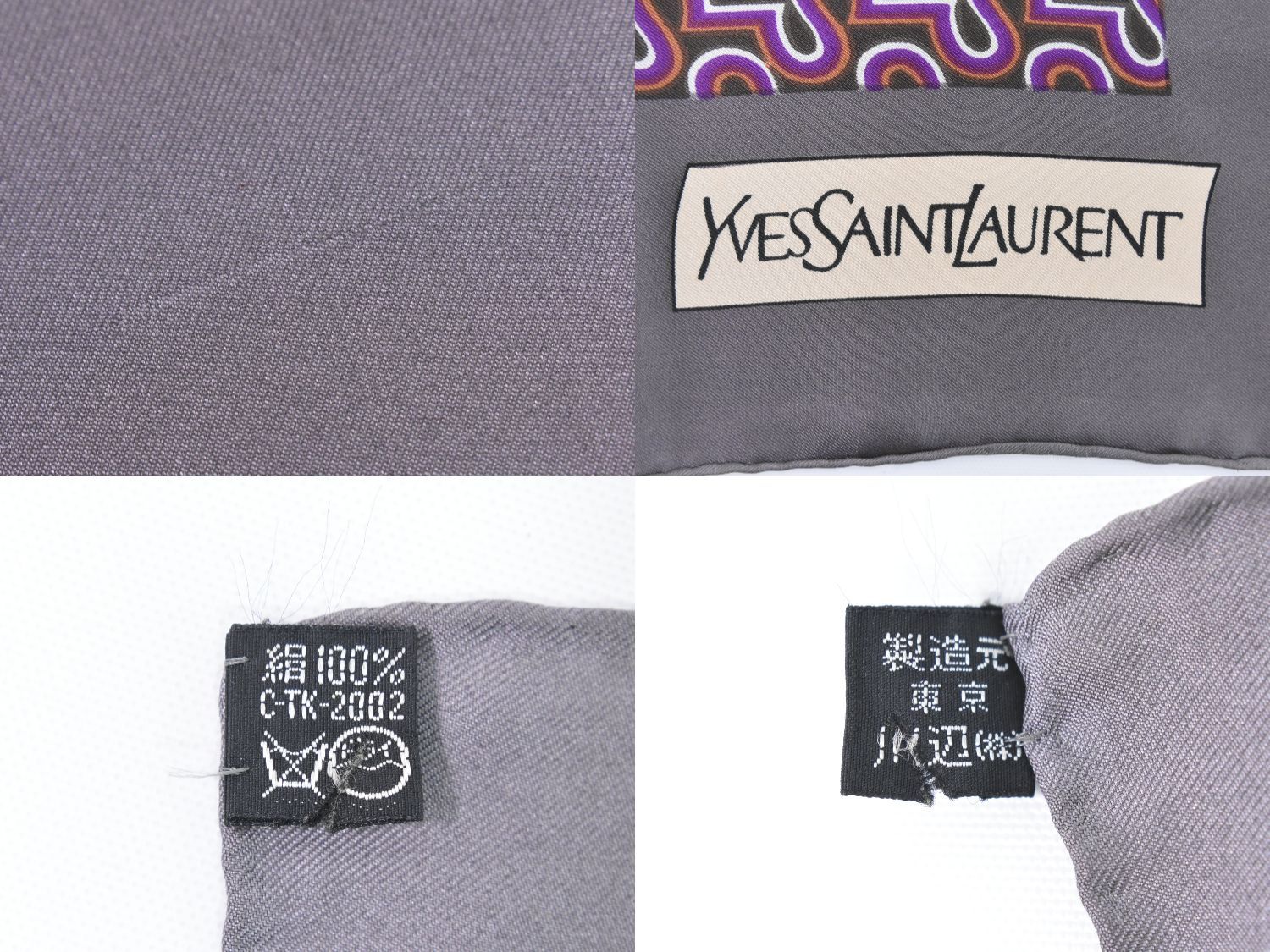 イヴ サンローラン YVES SAINT LAURENT YSL シルク スカーフ ショール バンダナ グレー マルチ 服飾小物 フォロー割
