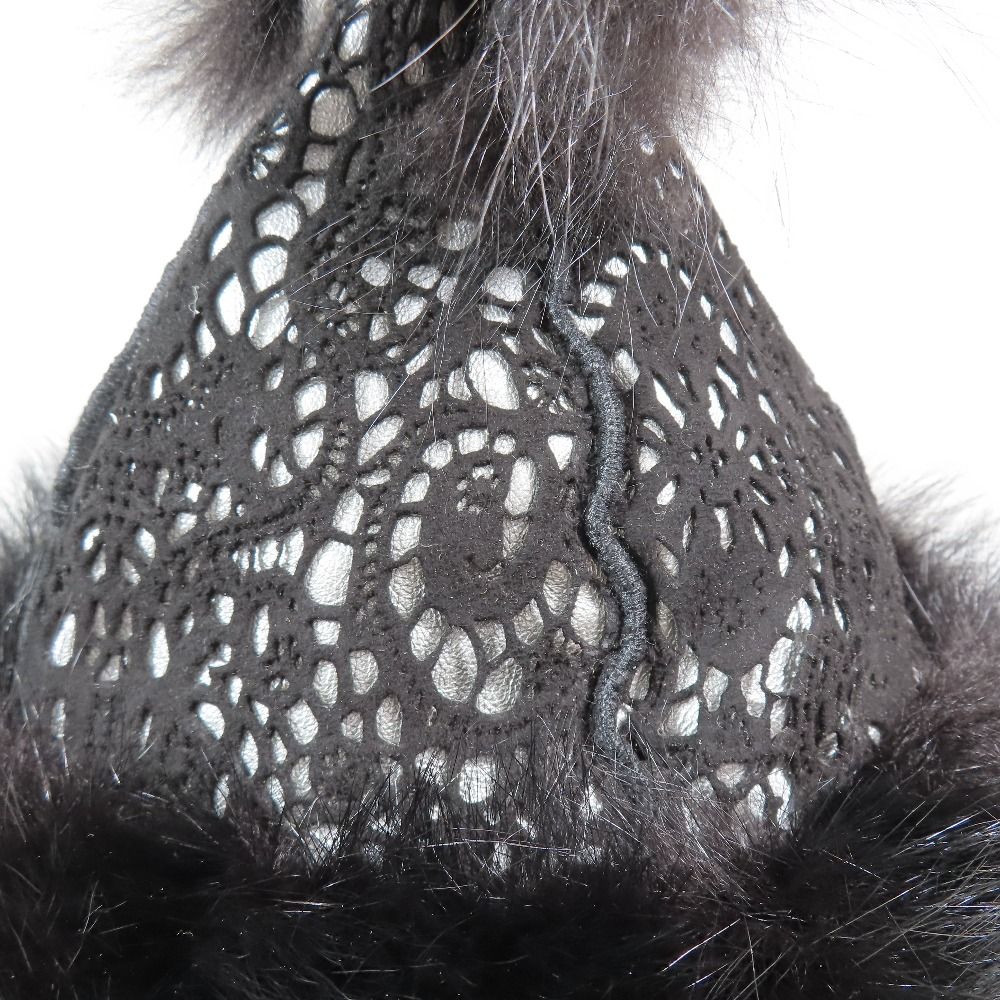 【商品名】Christian Dior クリスチャンディオール ガリアーノ期 フィッシャーファー レース ワッチキャップ 帽子 裏トロッター 58 黒