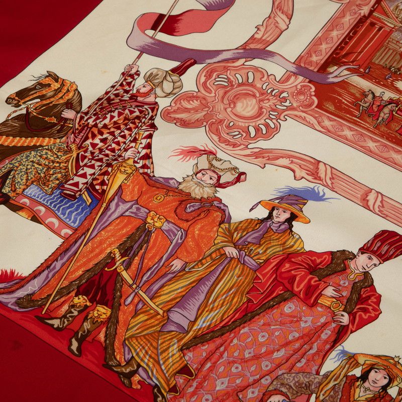 エルメス カレ90 EN L HONNEUR DE MHT ムッシュ ド Tのためのトルコ行進曲 レッド マルチ シルク レディース HERMES 1-0231478
