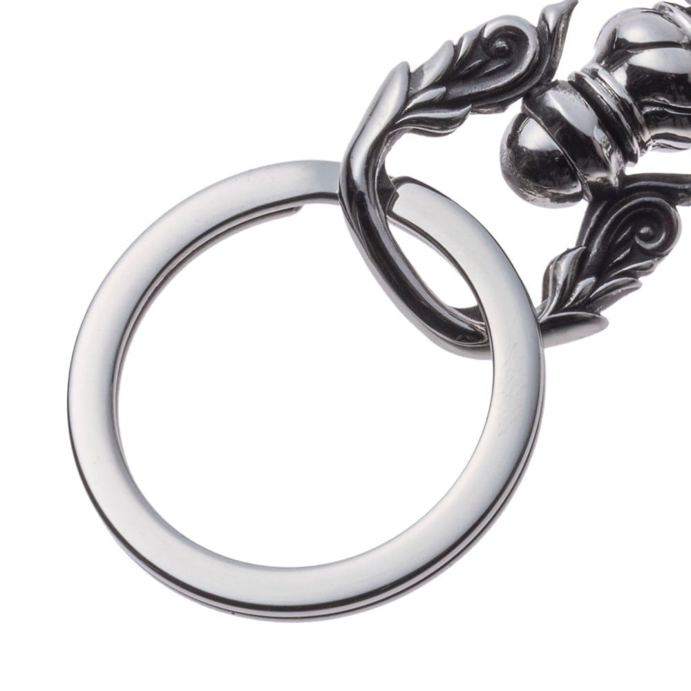 星型カラビナに気品を宿した、キーリング式キーホルダー。ワンタッチで開閉できるカラビナは、ベルトループやバッグに素早く着脱でき、日常の所作まで美しく見せます。フレームには唐草とフルール・ド・リスを繊細に彫り込み、陰影のコントラストで立体感を強調。可動部の精巧な作り込みも魅力で、指先に触れるたび滑らかな動きを実感できます。素材は傷に強く、艶が長く続くステンレス。ラグジュアリーな輝きとタフさを両立させました。仕上げは選ばれた工房で一点ずつ。磨きとエッジの調整を重ね、角の収まりや厚みまで上品に統整しています。キュートな星のシルエットにクラシカルな意匠を重ねた、モダンで小さなアートオブジェ。装いに洗練と遊び心を添える、長く愛せる一本です。