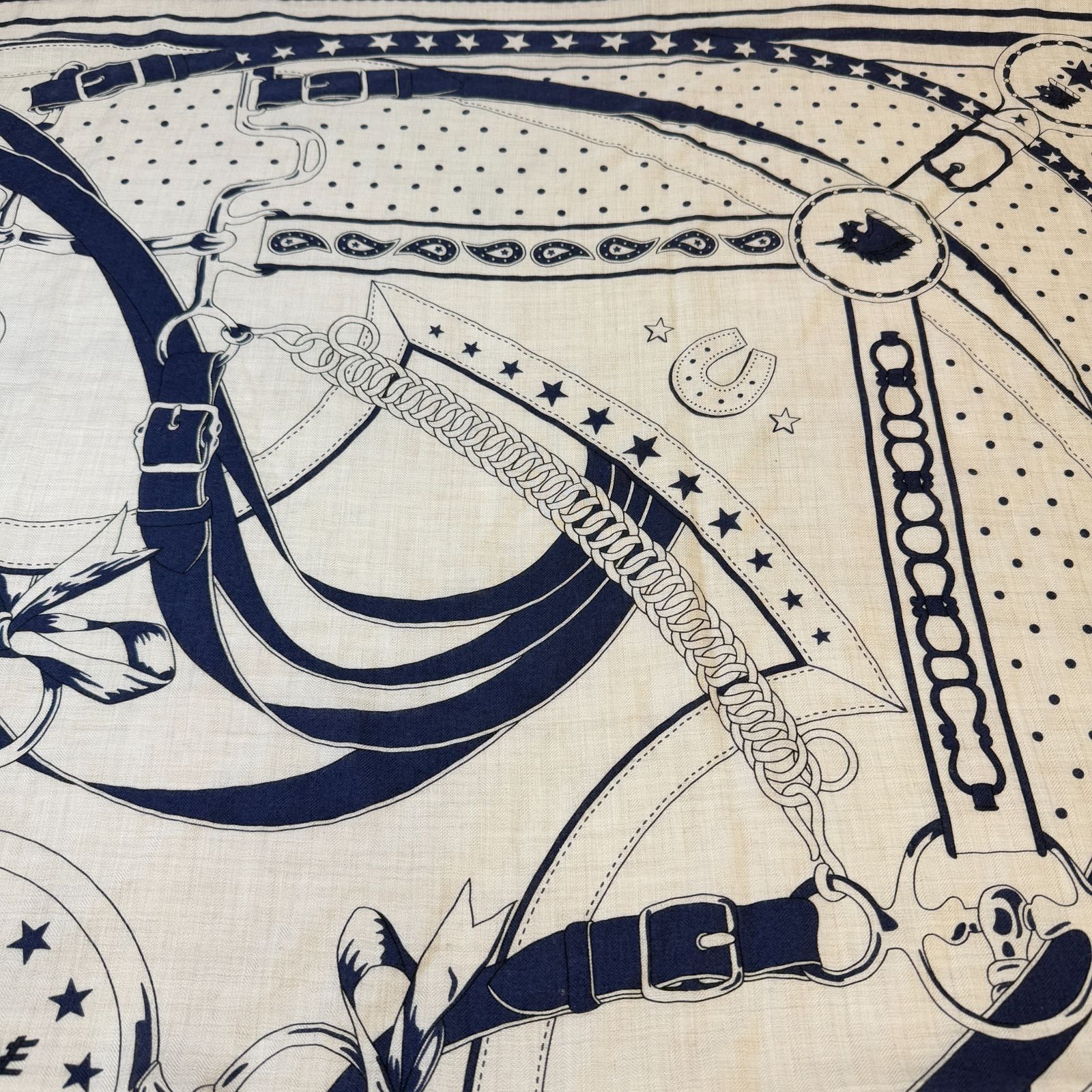 鑑定済み エルメス カレジェアン 140 朝の散歩 ベージュ ネイビー カシシル バンダナ スカーフ