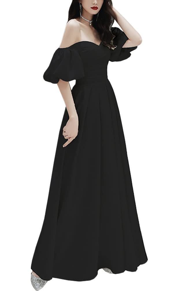 2XL_ブラック [JINZUOMA] レディース パーティードレス ドレス イブニングドレス ロングドレス ワンピース 結婚式ドレス フォーマルドレス エレガント 無地 甘い 肩出し 結婚式 披露宴 演奏会 パーティー 宴会 卒業式 (ブラック,2XL,2XL)