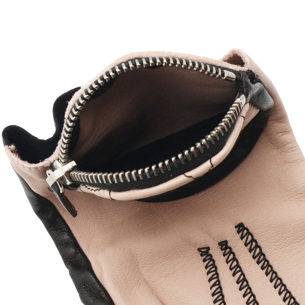 シャネル ココマーク マトラッセ ジップポケット付き フィンガーレス 手袋 グローブ #8 ラムスキン レザー バイ ピンクベージュ ブラック シルバー金具 AA 0718 CHANEL