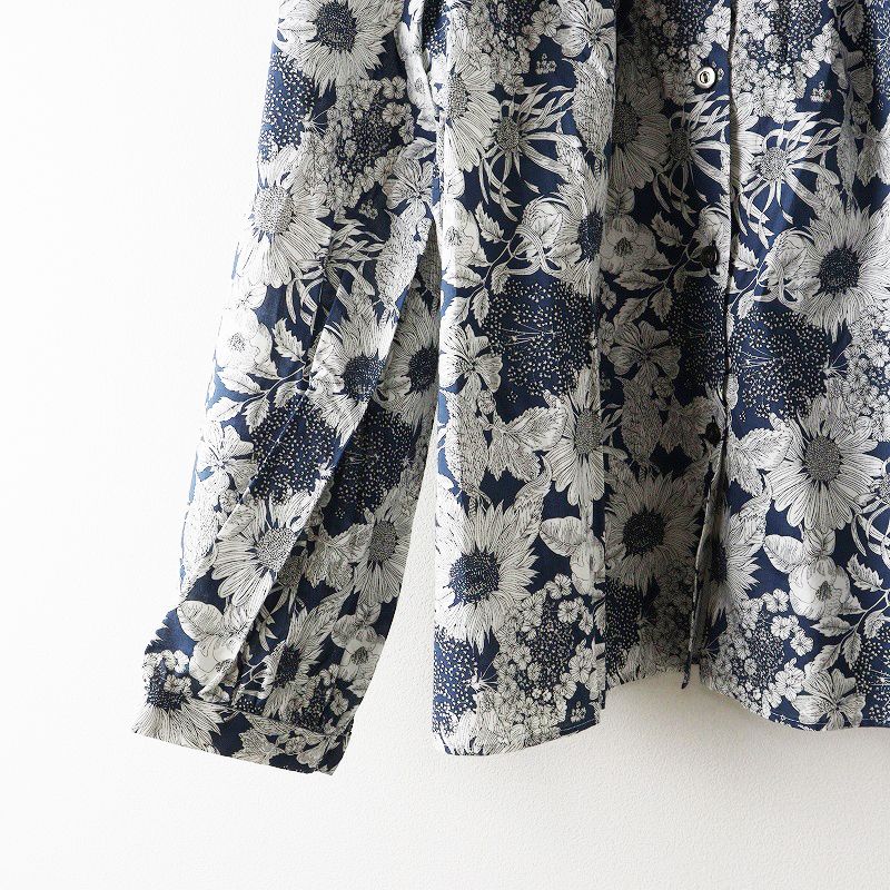 定価1.5万 クーポール CouPole リバティプリント スイムダンク フリルカラー長袖シャツ 38 ネイビー┃花柄