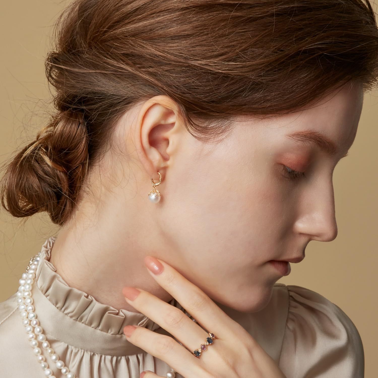 ねじ式のイヤリングより軽量で、スマートなピアリングは圧迫感もなく着けている違和感を感じさせない耳にフィットするイヤリングです。ギリシャの海辺に咲く花、カモミールからイメージ。リラックス効果のあるハーブとしても有名ですが、花言葉にも「あなたを癒す」といった意味があります。「大地の林檎」を意味する、カモミール。林檎のように優しく甘い香りをさせる可愛らしいお花がリズミカルに配置されたデザインです。